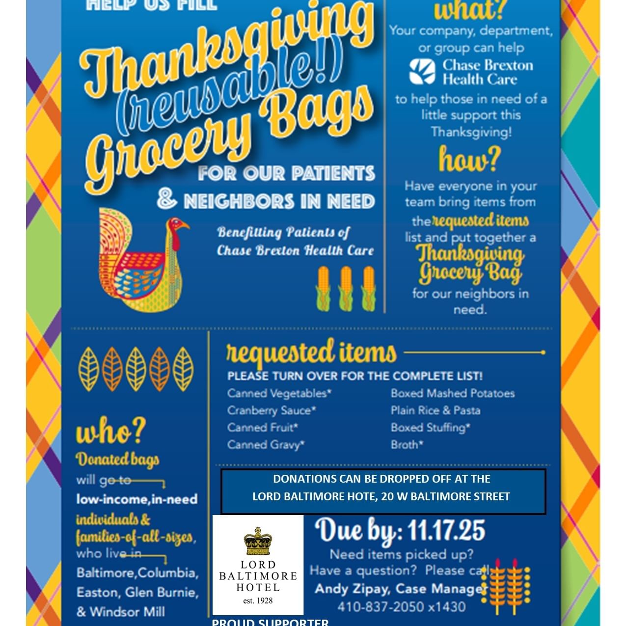 The Lord Baltimore Hotel partnered with Chase Brexton Health Care for a Thanksgiving food drive, acting as a collection point for non-perishable food donationsv